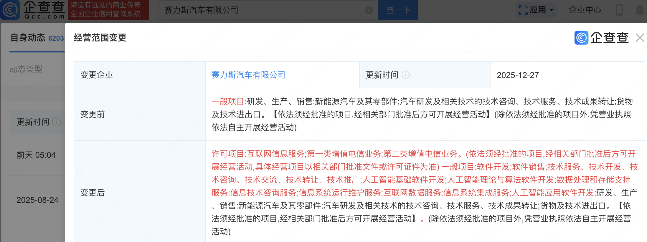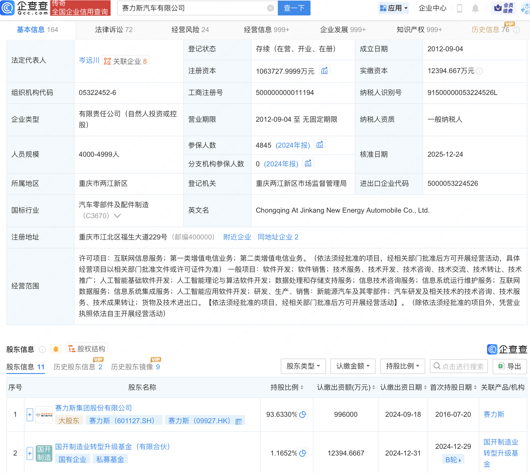 近日配资炒股官网官网,赛力斯汽车有限公司发生工商变更,经营范围新增人工智能基础软件开发;人工智能理论与算法软件开发;人工智能应用软件开发等。企查查信息显示,该公司成立于2012年,由赛力斯(601127)持股93.63%。